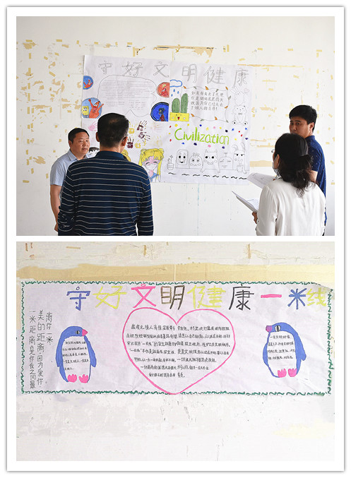 为进一步增强学生防控新冠肺炎的意识,加强学生对新冠肺炎疫情防控知识的了解,学习疫情阻击战中涌现的“最美逆行者”的先进事迹 ,6月1号下午,我院全体班主任在王开德书记的带领下对本院所有教室进行“守好文明健康一米线”主题板报评比活动。