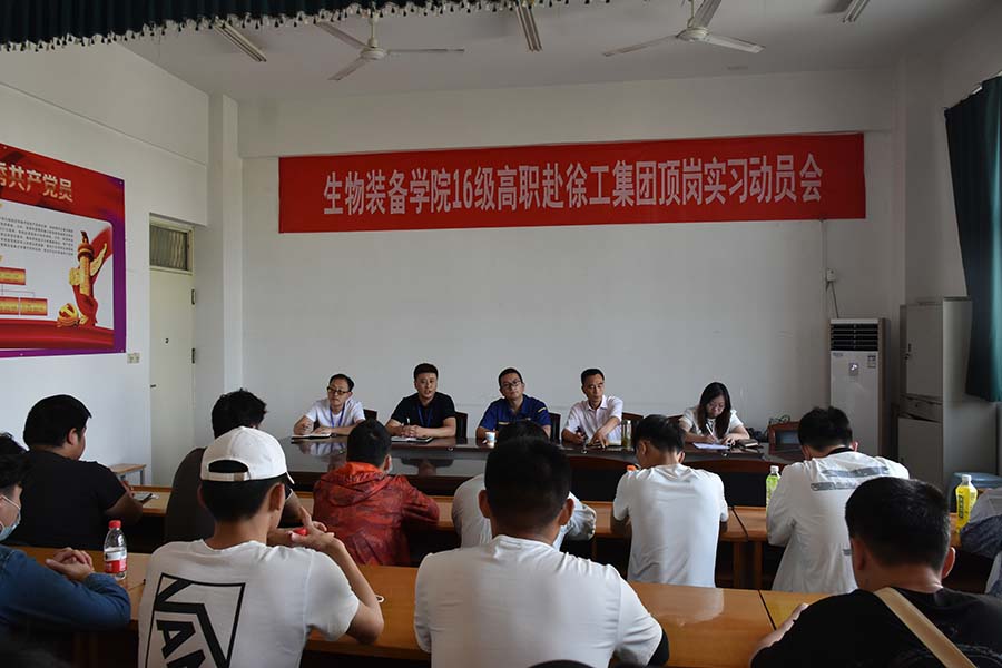 为落实学院“治人文,精技术”办学理念,做好2021届毕业生顶岗实习工作,6月4日下午,生物装备学院在二楼会议室召开赴徐工集团顶岗实习动员大会。生物装备学院院长史先焘、徐工集团液压件事业部人事主管杨海鹏、副院长王世敏、学生科科长杨海亮、辅导员张梅老师及相关班主任和16高职全体同学一起参加会议,会议由党总支副书记史少伟主持。