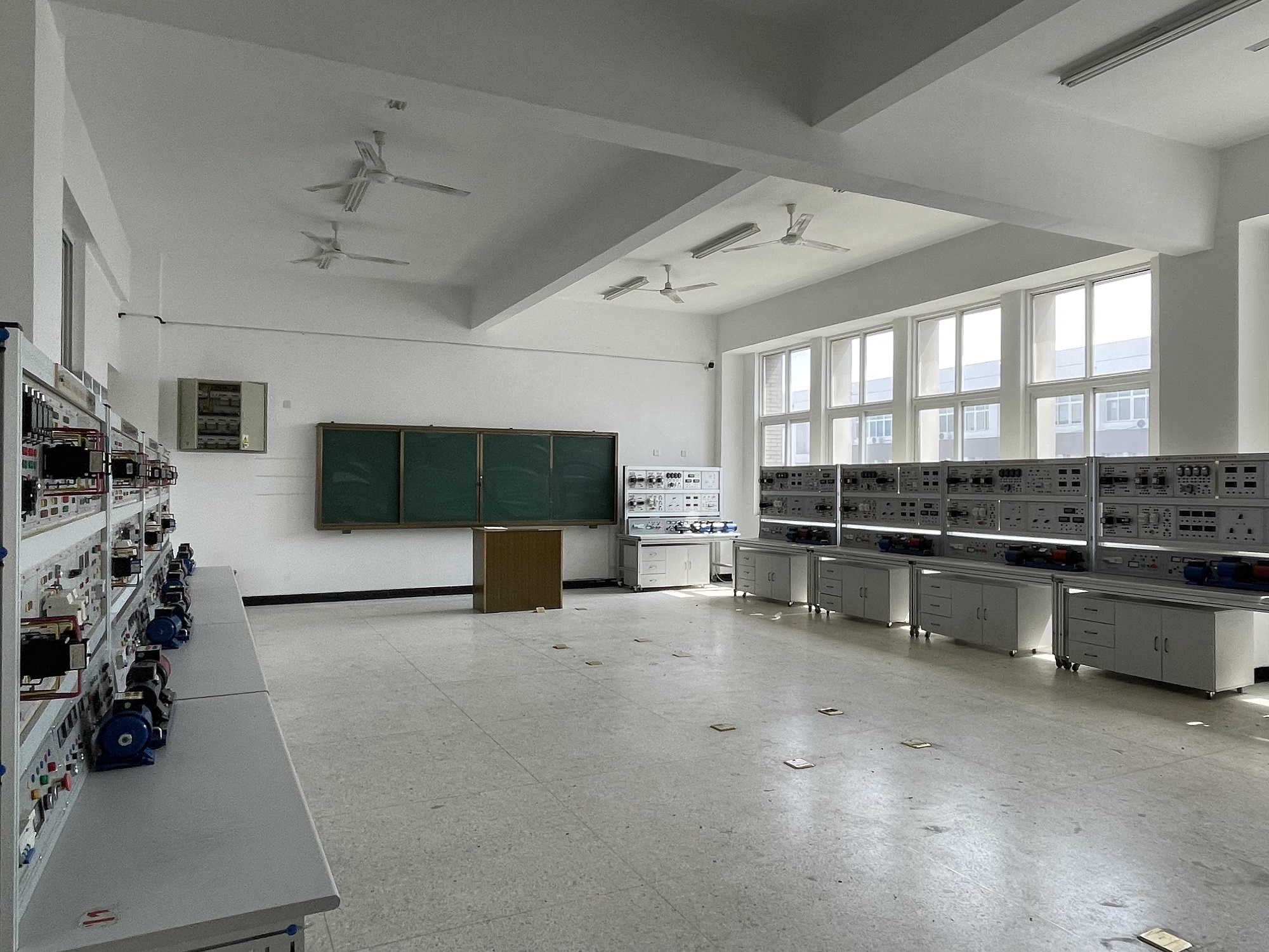 实验室内仪器设备有:电机及电气技术实验装置,配备~3N/380V/50HZ工作电源,整机容量:≤1.5KVA,工作环境温度-10℃~+40℃,相对湿度<85%(25℃)。主要组件有他励式直流电机2台(同轴)220V/400W、直流测速发电机27.5V/Kr/Min、三相异步电机380V/370W、直流电压表0~200V,交流电压表250V、交流电流表5A、励磁电流表1A、转速表2000R、按钮、空气开关、保险丝、接触器、电位器、特种电机、电机机组以及配套设备和仪器仪表等。