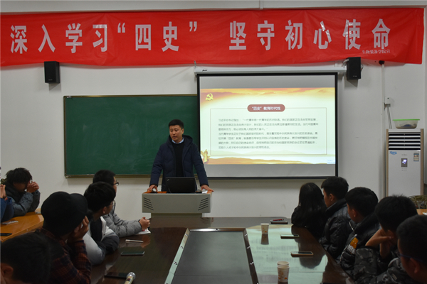 为深入学习贯彻习近平新时代中国特色社会主义思想,扎实开展“四史”主题教育活动,12月9日下午,生物装备学院召开“四史”教育主题党课,由党总支副书记史少伟主讲,学院学生会、团总支主要学生干部参加学习。