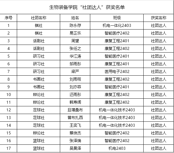 为响应学院“六个一”工程,丰富学生的课余文化生活,促进学生多元发展,增强社团凝聚力,2025年4月至5月,生物装备学院各社团积极开展了丰富多样的“加入一个社团”主题活动,涵盖文化、体育、学术等多个领域,为同学们提供了广阔的展示自我、交流学习的平台。全体辅导员组织并参加社团活动评选,评选出“社团达人”17名进行表彰。