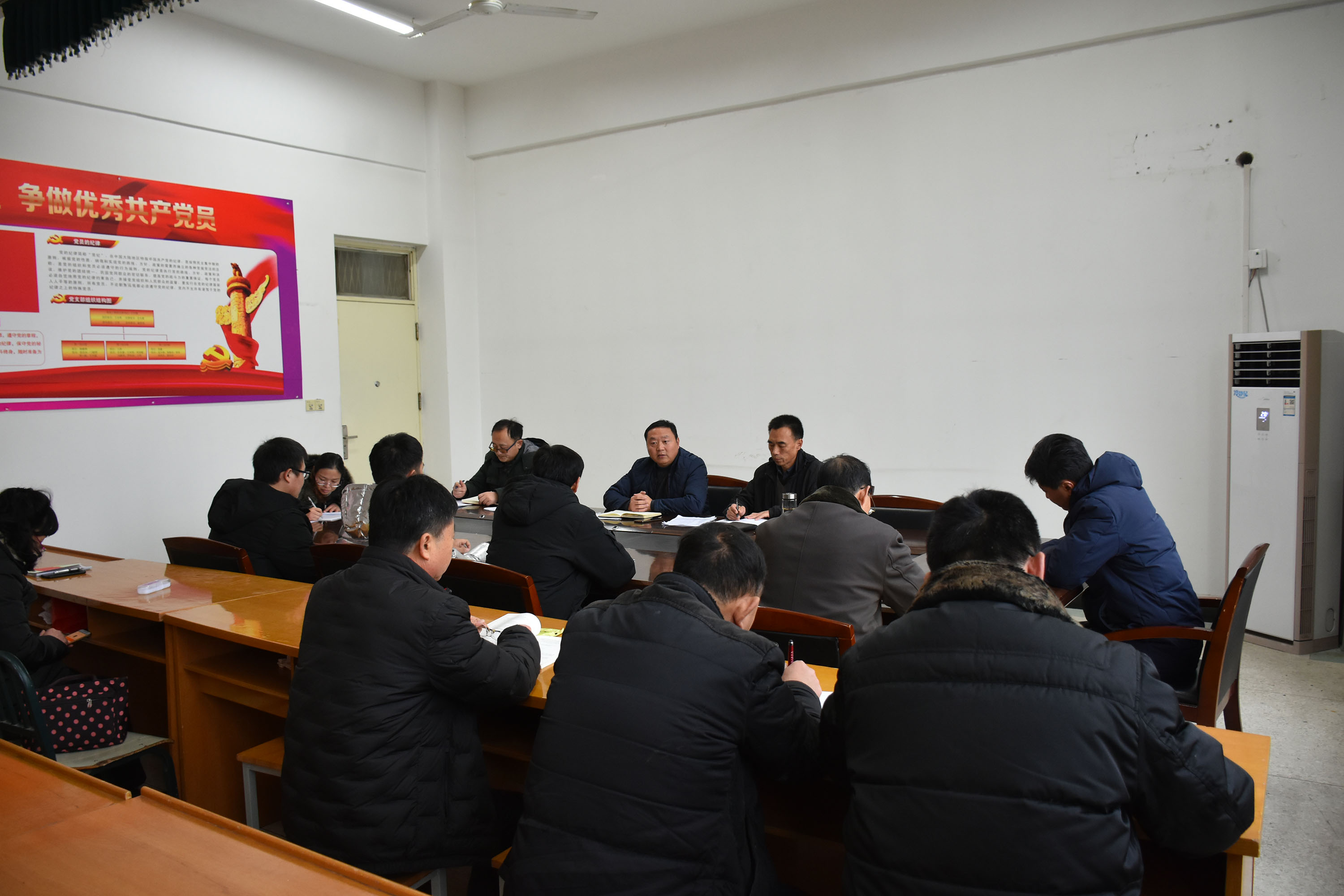 三名拟接收对象为王阳、闫九海、王朝,会议按照接收流程依次进行。首先由拟接收为预备党员的同志向党组织汇报了自身基本情况,宣读入党志愿书。杨海亮同志代表支委会向大会报告四位同志的审查情况,随后,入党介绍人如实介绍了各自联系的发展对象情况,并对其能否入党表明意见,与会党员充分讨论并发表了意见。经大会票决,支部与会正式党员全票同意接收四位同志为预备党员。杨海亮同志宣读支部大会决议,王阳等三位同志做表态发言:感谢支委会和全体支部党员的信任,我们将不忘入党初心,加强政治学习,时刻以党员的标准严格要求自己,主动接受党组织考察、批评。