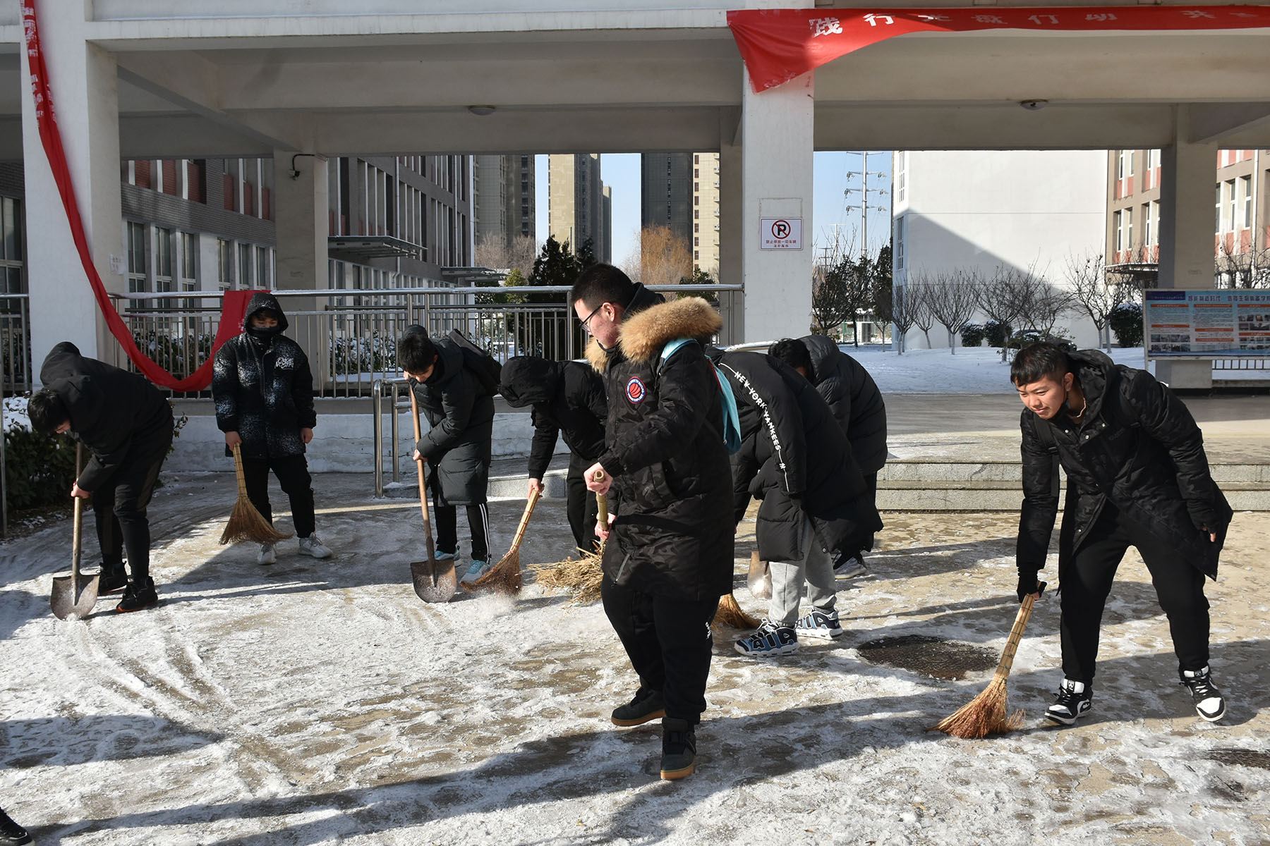 在全班同学的共同努力下,堆积在学院门前的积雪基本清理干净,为同学们创造了一个有序的生活和出行环境,受到了学院领导老师的一致好评。