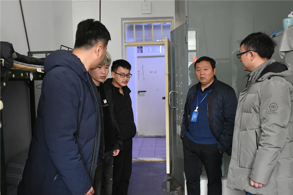 本次检查由生物装备学院党总支书记王开德带队,带领五号楼涉及宿舍的班主任老师对公寓用水用电、卫生保持、消毒通风等情况进行了统一的摸排,对发现的安全隐患和不良习惯提出了限期整改的具体要求,同时对普遍存在的卫生间漏水,用电防火安全等问题现场组织大家探讨解决方案,并向有关部门进行了集中反馈。随后,每位班主任老师针对本班宿舍现状和问题现场召开班会,集中进行整改,从文明礼仪、生活习惯、安全意识等方面上了一堂生动的“微班会课”。目前五号公寓楼整体的硬件条件较差,生物装备学院计划推行宿舍简约的宿舍搭配方案,利用有限的宿舍空间,对每个宿舍施行“标准化”管理,逐步增强宿舍育人效果。