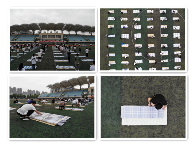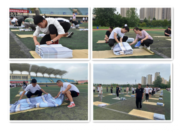 来自全院的160余名宿舍长整装待发,他们按照纵横各13人的方针排列,犹如行军布阵,队伍整齐有序,比赛由国旗班退役士兵邱实同学主持,比赛时间限时15分钟,同学们按照要求在规定区域摆好凉席,并将棉被横向平铺在凉席上。