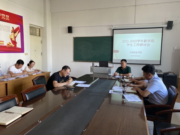 9月16日,生物装备学院在二楼会议室召开新学期学生工作研讨会,全体辅导员、班主任参加了会议,党总支副书记史少伟主持会议。