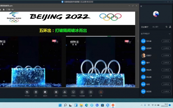 此外,老师们还与同学们共叙了北京冬奥会的精彩瞬间。无论是开幕式上象征着团结、友爱和吉祥的编织中国结形状雪花,还是场上炫目多变的精彩表演,都使同学们深深体会到了中华文化的博大精深,感受到了中国综合国力的增强,见证了中国数字科技的力量。此外,运动员身上的优秀精神品质,自我挑战和战胜困难的信念也使同学们受到了一次精神的洗礼。