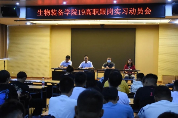 8月22日上午,生物装备学院在图书馆会议室召开19级高职学生跟岗实习动员大会。生物装备学院党总支书记王开德、院长史先焘、副院长王世敏、学生科科长杨海亮、辅导员张梅、生物装备学院19级高职全体实习学生及班级班主任老师参加了会议。会议由生物装备学院党总支副书记史少伟主持。